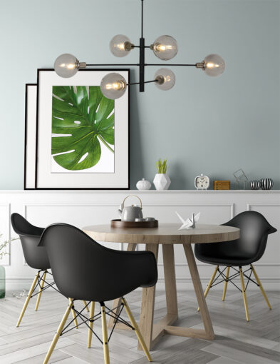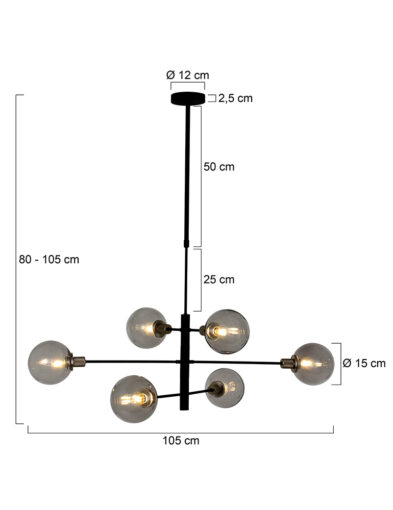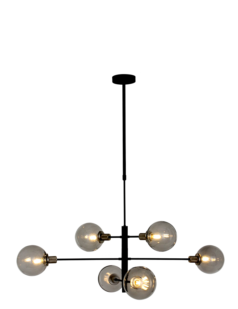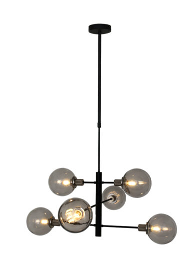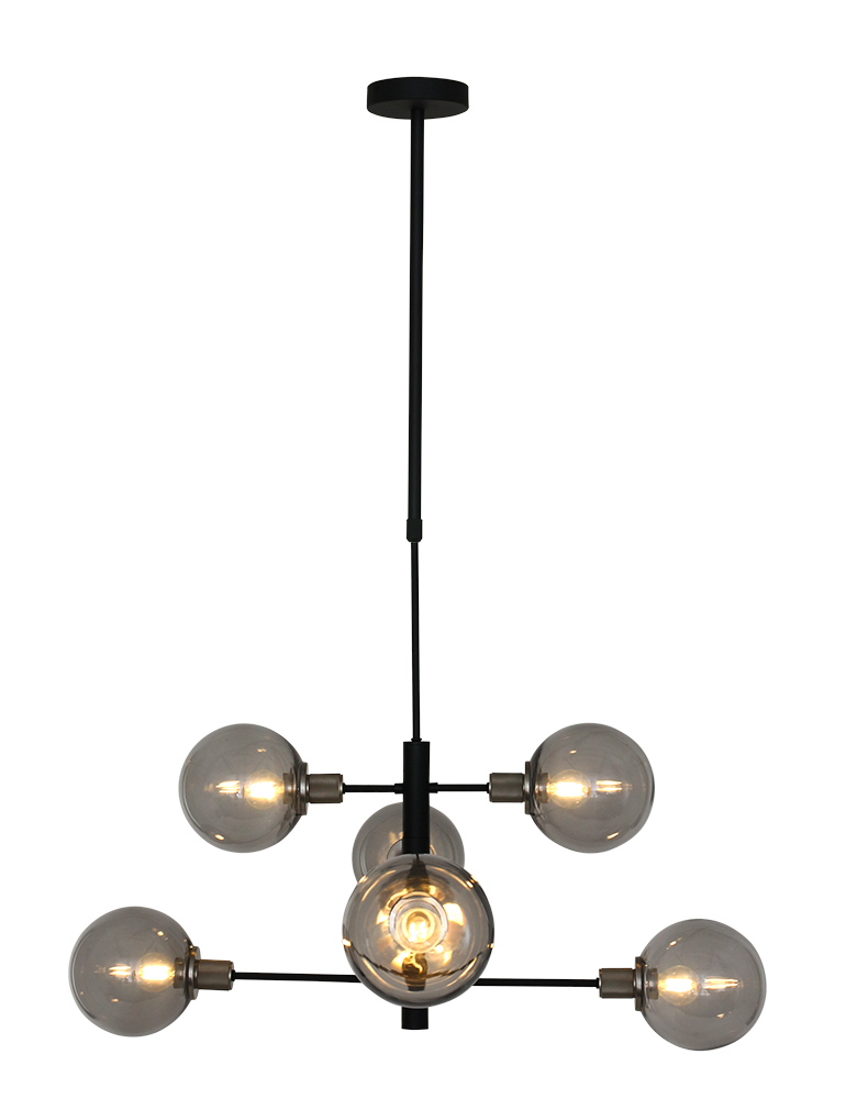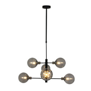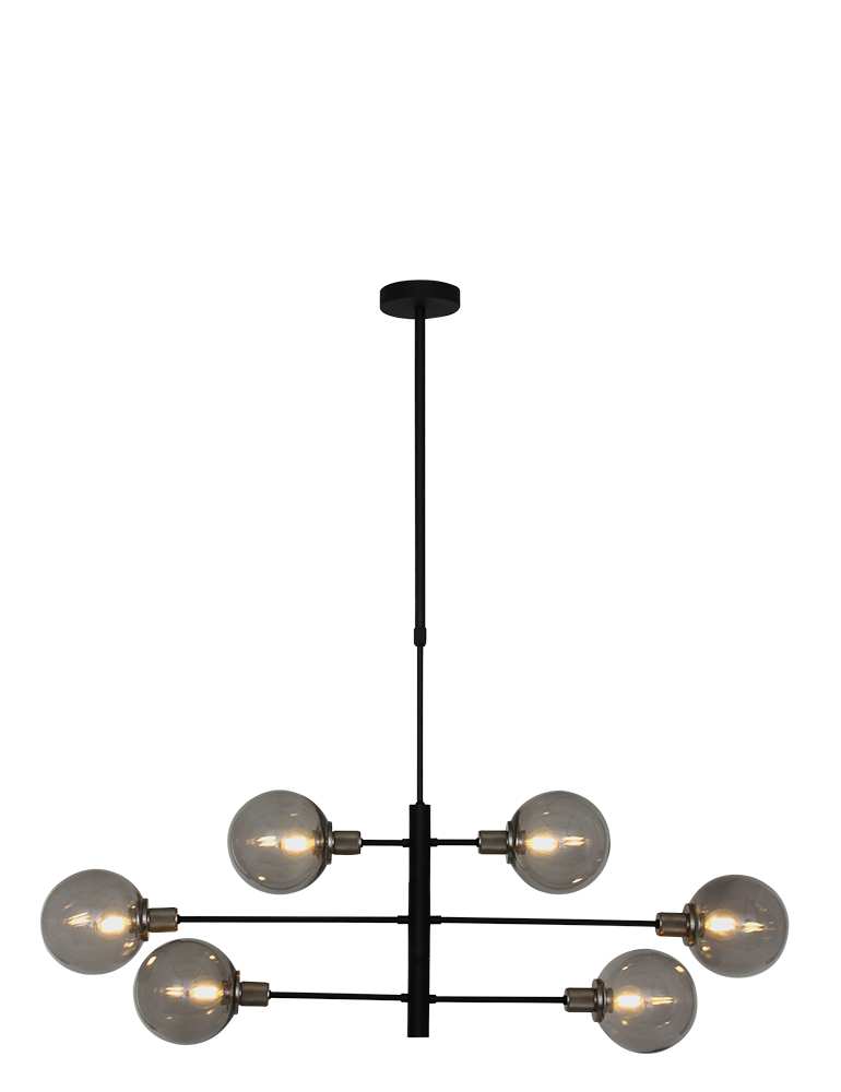 Die Constellation Pendelleuchte aus der Steinhauer-Serie ist eine 6-flammige Designleuchte mit E14-Fassungen, geeignet für Lichtquellen bis zu 40 Watt pro Stück. Die rauchglas Kugeln können spielerisch positioniert werden und die Höhe ist zwischen 60 cm und 150 cm verstellbar. Die Lampe ist mit einem externen Dimmer und einer geeigneten Lichtquelle dimmbar.