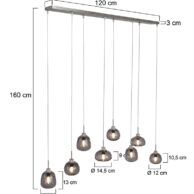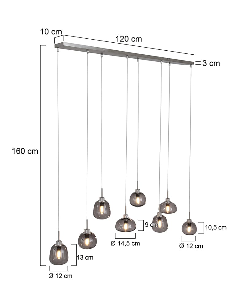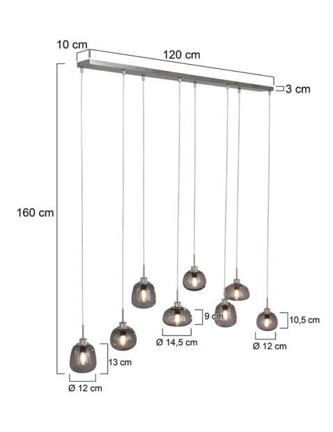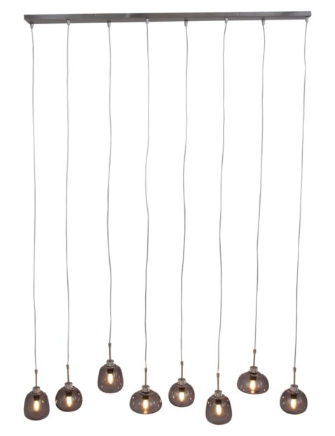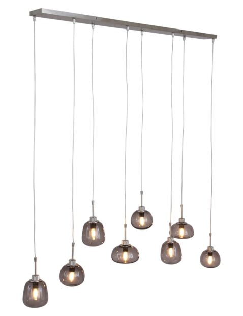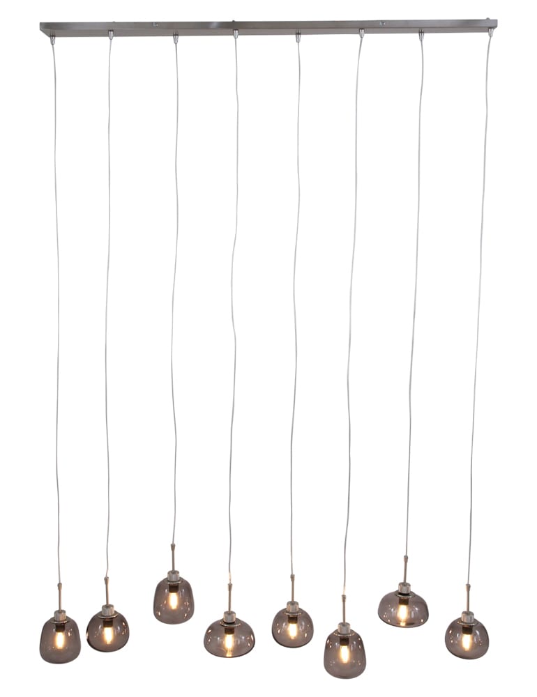 Sind Sie auf der Suche nach einer besonderen Hängeleuchte? Dann schauen Sie sich diese tolle Hängeleuchte von der niederländischen Qualitätsmarke Steinhauer an! Die Lampe 8-flammige Lampe hat acht kleine kugelförmige Lampenschirme aus Rauchglas. Rauchglas ist total im Trend und gibt der Lampe ein modernes Aussehen. Durch das Rauchglas bekommt die Lampe nicht nur ein modernes Aussehen, sondern auch eine elegante Ausstrahlung. Spricht Sie das alles an? Dann entscheiden Sie sich für diese tolle Lampe und hängen Sie diese zum Beispiel über Ihren Esstisch und genießen Sie von dem angenehmen Licht der Lampe.