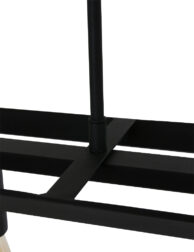 Das robuste schwarze Metallgestell der Buckley Hängeleuchte ist ein industrielles Statement! Zwei schlanke Kabel tragen eine rechteckige offene Konstruktion. Oben befinden sich drei Stangen mit an der mittleren vier zylindrischen Fassungen. Das Licht strahlt durch die Öffnungen in alle Richtungen. Wählen Sie schöne Filament- oder Rauchglaslichtquellen. Auch in kleinerer Größe für über Ihrem Esstisch oder Kochinsel.