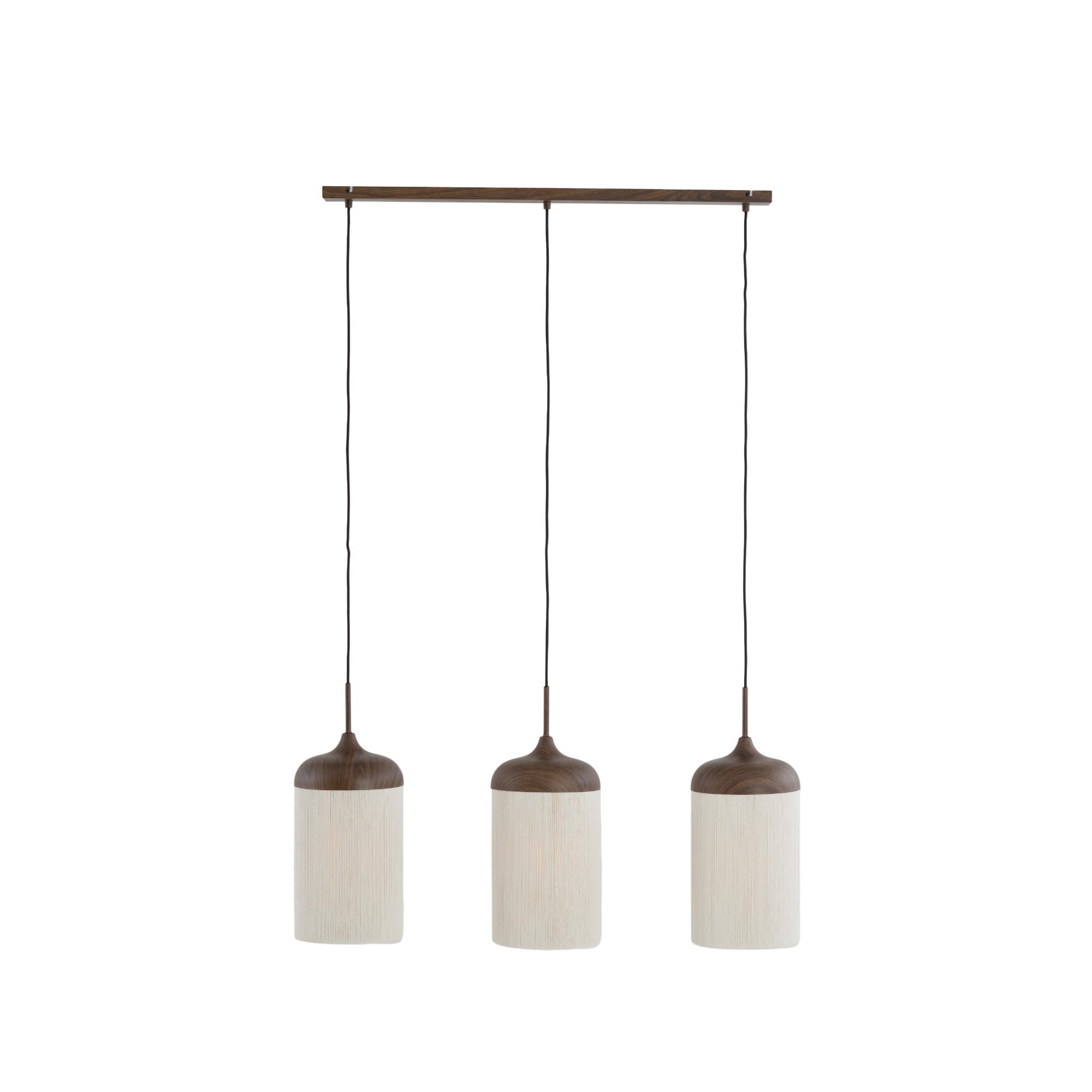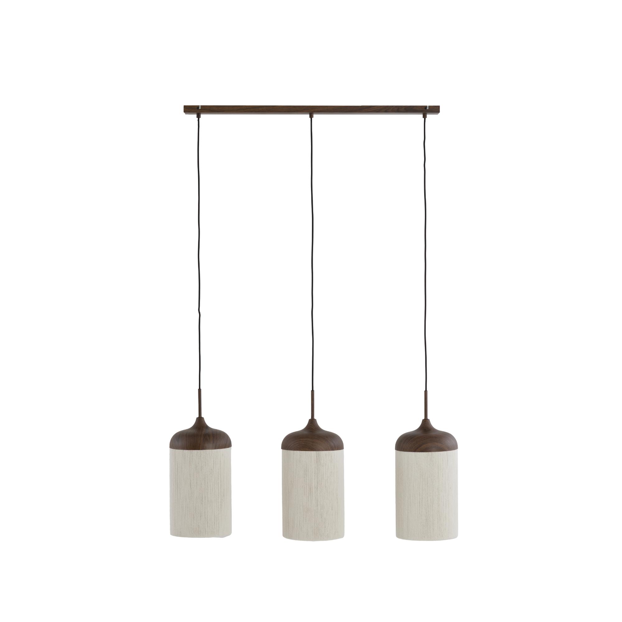 Bringen Sie Wärme und Stil in Ihr Esszimmer mit der 3-lampigen Hängeleuchte von Light & Living, ausgeführt in einer eleganten Kombination aus Natur und Braun. Die becherförmigen Lampenschirme, gefertigt aus Metall und Baumwolle, verbreiten ein stimmungsvolles Licht, das perfekt zu einer modernen oder Japandi-Stil Einrichtung passt. Die Lampe hat eine Größe von 90 cm in der Länge, 22 cm in der Breite und 32 cm in der Höhe, ideal über dem Esstisch. Bedienen Sie die Lampe ganz einfach über einen Wandschalter. Bitte beachten Sie: Diese Lampe wird ohne Kabel geliefert und muss direkt ans Stromnetz angeschlossen werden.