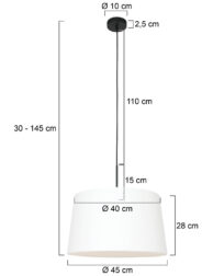 Ein breiter Leinen weißer Schirm und ein schmales schwarzes Metallgestell. Das ist in einer Nussschale die Hängeleuchte mit Leinen weißem Schirm Steinhauer Sparkled Light schwarz. Diese breite Hängeleuchte zeigt schön, wie Metall und Leinen – robust und weich – sich gegenseitig verstärken können. Es ist eine Lampe, die Aufmerksamkeit erregt, ohne aufdringlich zu sein! Ideal für den Flur, die Küche oder in einem Büroraum.