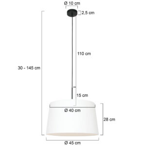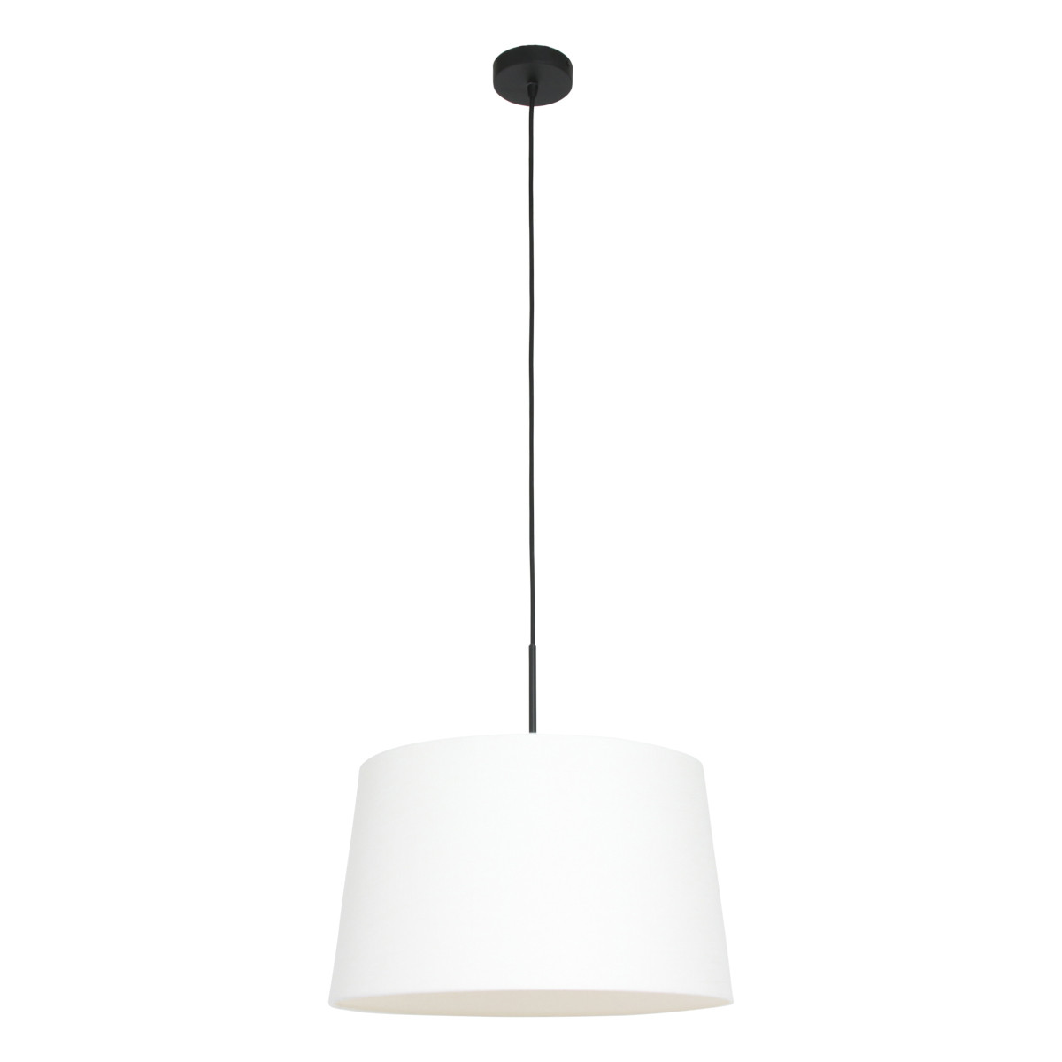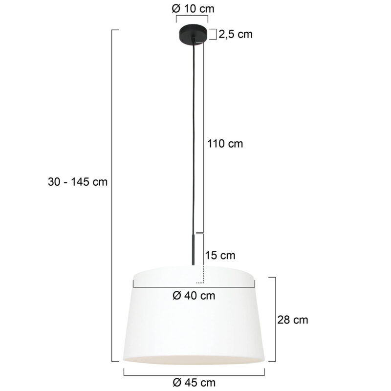 Diese Hängeleuchte strahlt zeitlose Eleganz aus. Die Kombination aus dem luftigen weißen Leinen-Schirm und dem subtilen schwarzen Gestell macht sie geeignet für verschiedene Einrichtungsstile, von modern bis industriell.