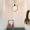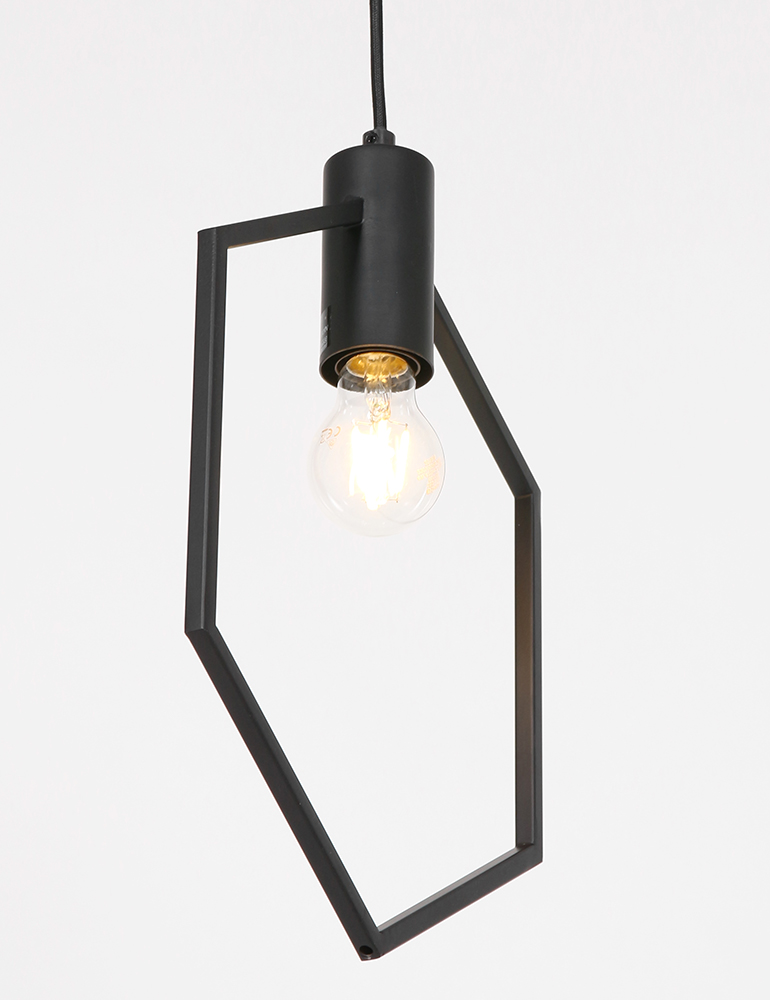 Der geometrische Rahmen von diesem Modell befindet sich in erdigem Schwarz und betont die leichten Linien des modernen Designs. Der schwarze Rahmen schafft den hervorragenden Kontrast in Stil und Ton und verleiht ihr Hoch und Tiefen. Die skulpturale Pendelleuchte hängt wie an Seidenfäden. Es hat einen futuristischen und skulpturalen Look. Die auffällige Pendelleuchte passt gut zu modernen Innenräumen.