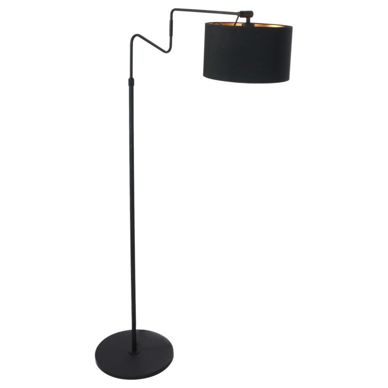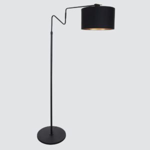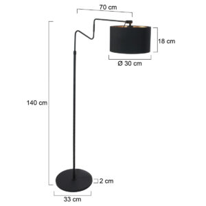 Die zeitgemäße schwarze Stehlampe aus der Linstrøm-Serie besteht aus Metall mit einer schwarzen Pulverbeschichtung. Die Lampe hat eine E27-Fassung und ist geeignet für Lichtquellen bis 40 Watt (nicht enthalten). Der verstellbare Arm hat eine Reichweite von 95 cm, und die Gesamthöhe der Lampe beträgt 140 cm. Der schwarze Stoffschirm mit goldener Innenseite hat einen Durchmesser von 30 cm und eine Höhe von 18 cm. Die Lampe wird mit einem 250 cm langen Kabel und einem Fußschalter geliefert.