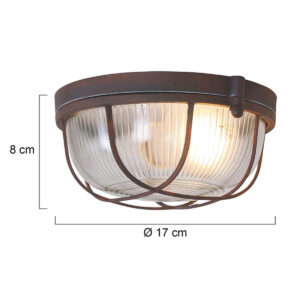 Diese industrielle Deckenlampe aus der Lisanne-Serie ist mit einer rostbraunen Oberfläche und einer stabilen Metallkonstruktion gestaltet. Der Glasschirm verteilt das Licht gleichmäßig und sorgt für eine warme Atmosphäre. Mit einer E27-Fassung ist sie für Lichtquellen bis zu 40 Watt geeignet. Die Lampe hat einen Durchmesser von 17 cm und eine Höhe von 8 cm. Dank der kompakten Größe passt sie perfekt in verschiedene Räume.