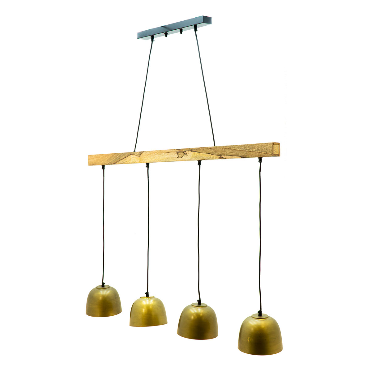 Erleben Sie die Schönheit dieser Pendelleuchte mit einem Holzsockel und eleganten Metalkappen in antikem Messing. Vier gedrehte Kabel von 1,2 m verlängern die Eleganz in jede Ecke des Raumes, wobei jede eine E27-Fassung trägt, um optimale Lichtkontrolle zu gewährleisten. Ideal für die Verwendung mit energiesparenden LED-Lampen, um eine warme Atmosphäre zu schaffen.