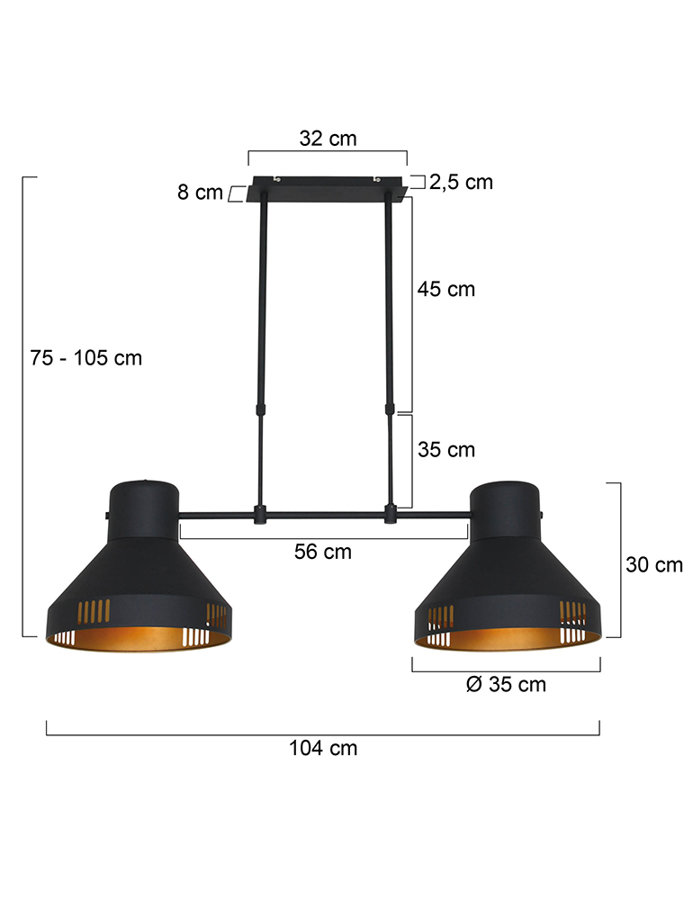 Entscheiden Sie sich für eine robuste und stilvolle Lampe mit der doppelten Hängelampe von Mexlite. Diese schwarzmetallenen Lampen mit goldenem Innenteil erzeugen einen besonderen Effekt. Die Wärme strahlt Ihnen entgegen, sobald Sie das Licht einschalten, aber auch wenn die Lampen ausgeschaltet sind, hinterlassen sie einen ebenso großartigen Eindruck. Bestimmen Sie selbst die Lichtstärke mit der dimmbaren Lichtquelle und einem externen Dimmer.