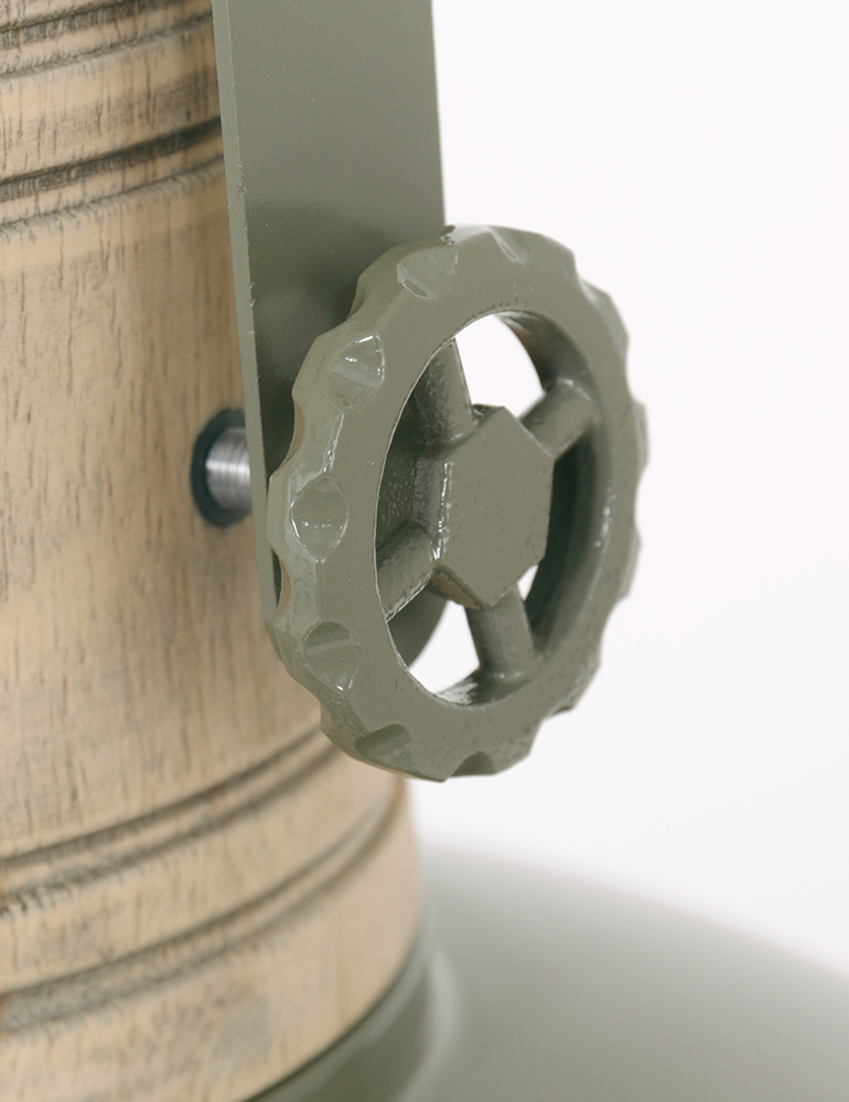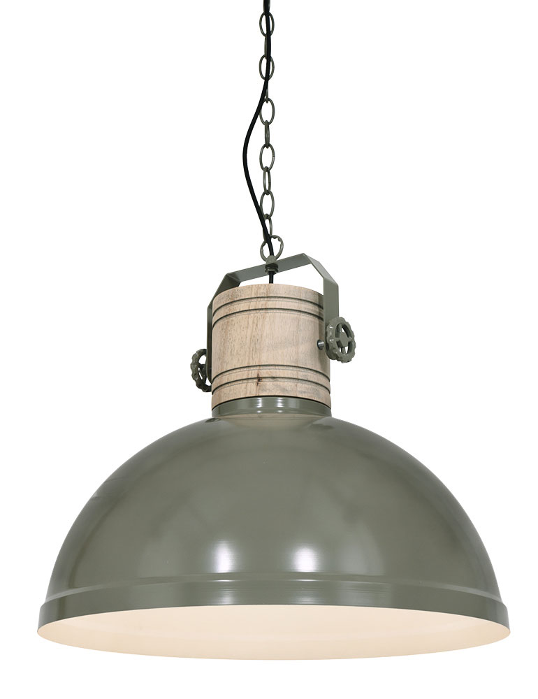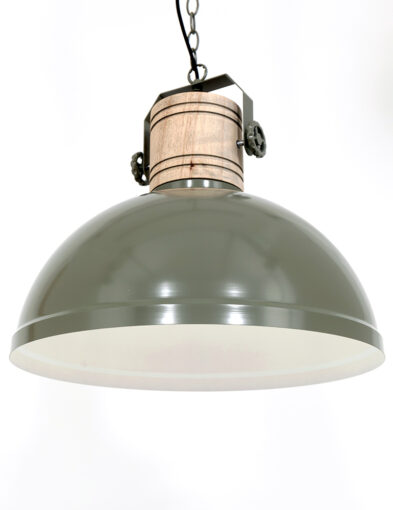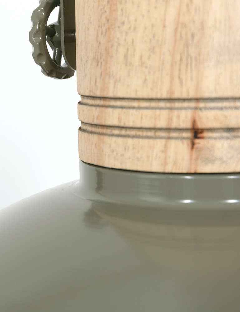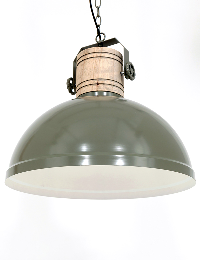 Industrielle Pendelleuchte Holzdetail Mexlite Gearwood grün