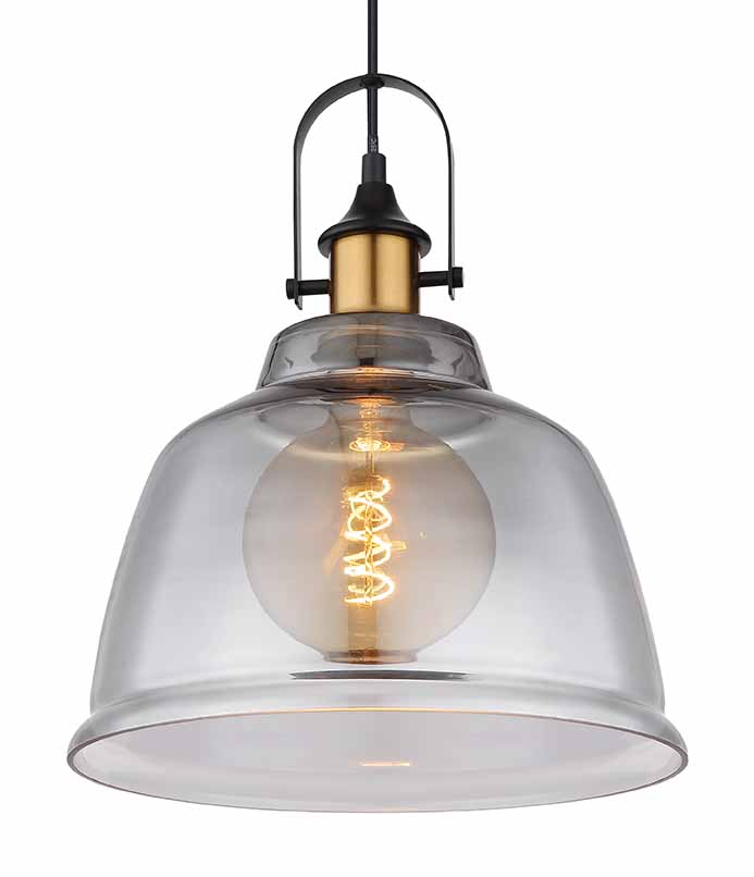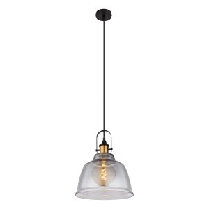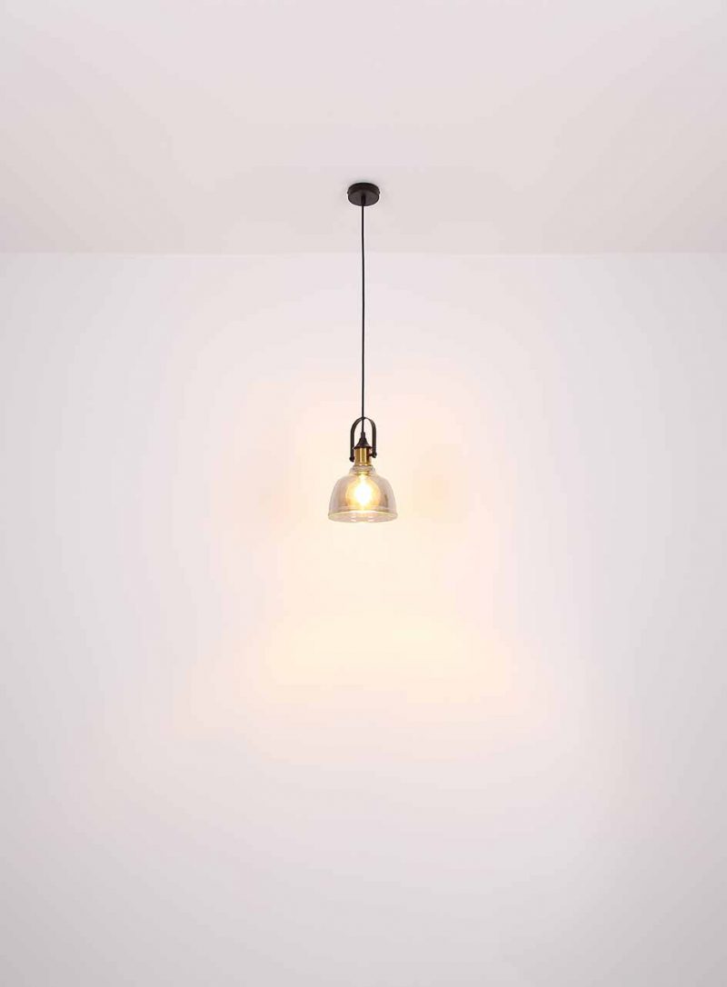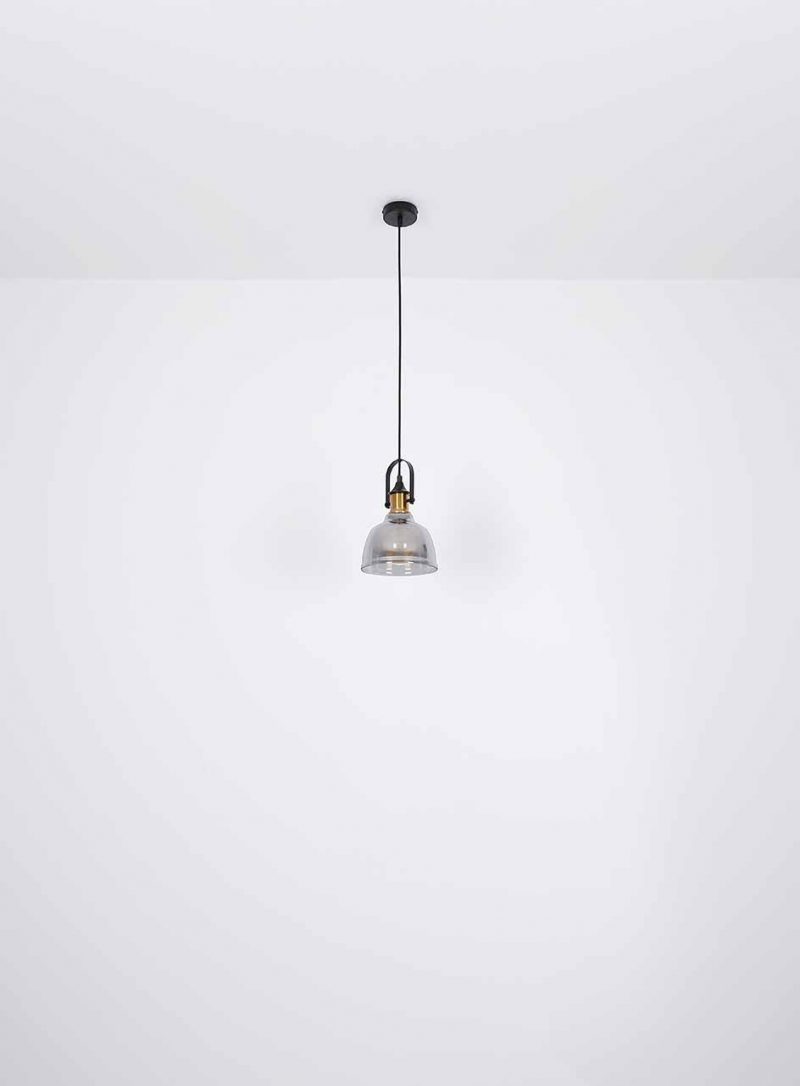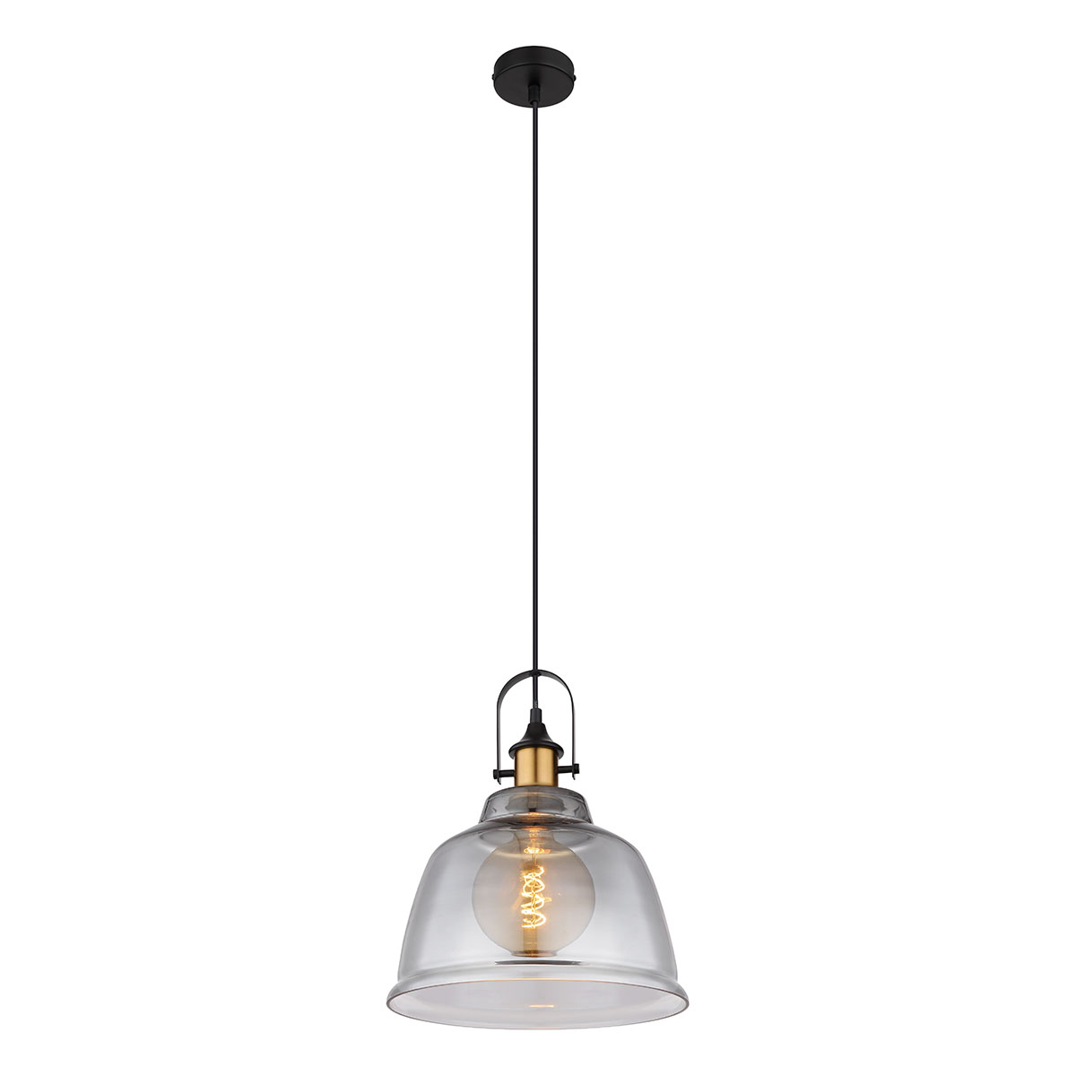 Diese Hängeleuchte aus der Dorothea-Serie (Ø 30 cm) beeindruckt mit ihrem wunderschönen Design aus mattschwarz lackiertem Metall. Sie besteht aus einer E27-Buchse, die von Messing umrahmt ist, und ist mit einem wohlgeformten, gebogenen, rauchigen Glasschirm ausgestattet, der an einem schwarzen Kabel bis zu 120 cm von der Decke hängt. Sie können sie mit einer geeigneten Lichtquelle Ihrer Wahl ausstatten, die Ihnen die Möglichkeit gibt, Lichtfarbe und Helligkeit individuell zu bestimmen. Mit verschiedenen Modellen aus derselben Serie können Sie eine stilvolle Atmosphäre in Ihrem Zuhause schaffen.