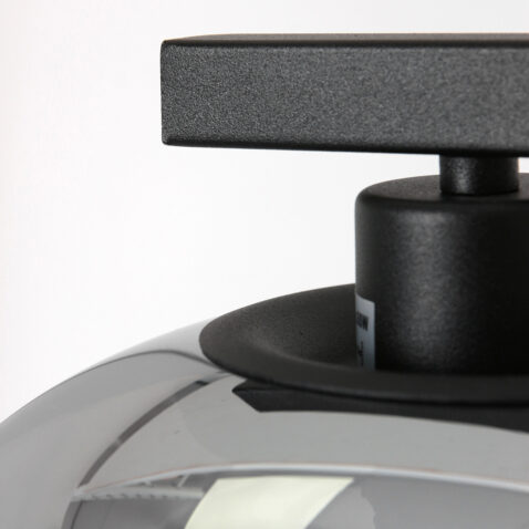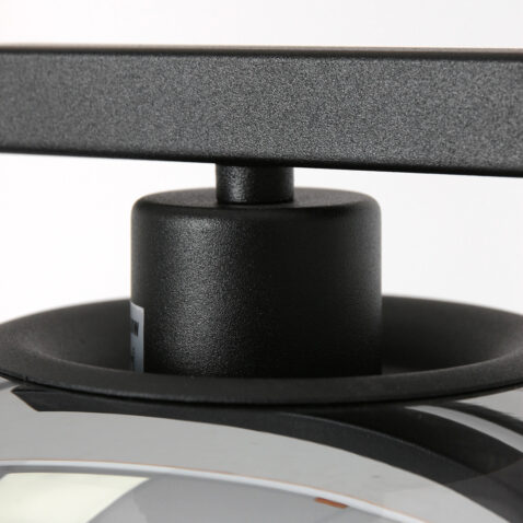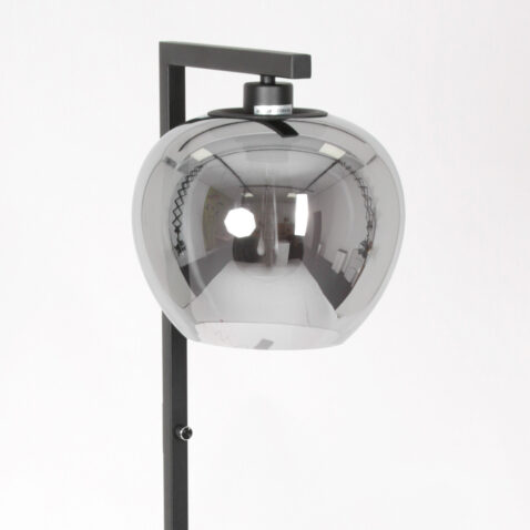 Industrielle schwarze Stehlampe mit Rauchglaskugel Steinhauer Stang
