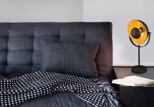 Industrielle Tischlampe Schwarz Kuppel Gold gefüttert Globo Xirena