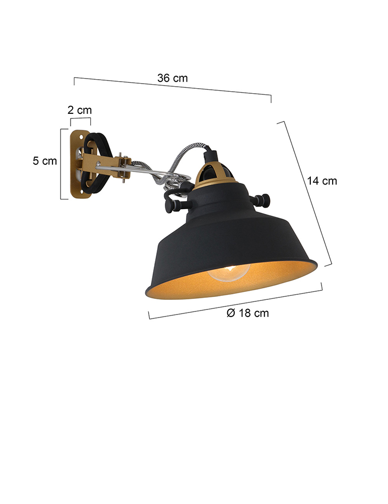 Dieser moderne Klemspot oder Wandleuchte aus der Nove-Serie hat eine coole Ausstrahlung mit ihrem schwarzen Metalldesign und dem goldfarbenen Inneren. Dank der reflektierenden goldenen Oberflächenbeschichtung erzeugt die Lampe eine warme und stimmungsvolle Beleuchtung. Der verstellbare Schirm und Arm ermöglichen es, das Licht genau nach deinen Wünschen auszurichten. Ausgestattet mit einer E27-Fassung und geeignet für Leuchtmittel bis 40W. Das Kabel ist 190 cm lang und enthält einen integrierten Schalter.