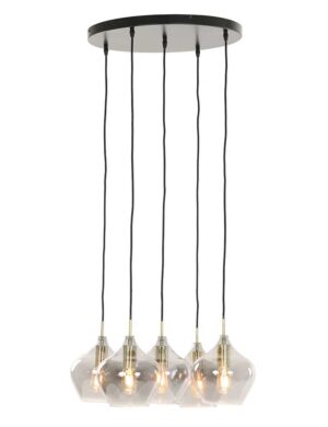 Die fünfflammige Pendelleuchte ist im Design eine Rundleuchte mit hübscher Formgebung. Die Glasleuchtenschirme von Light & Living wirken sehr edel. Die hochmoderne Metall-Glas-Leuchte kann über jeden Esstisch gehängt werden, um eine perfekte Ausleuchtung zu erreichen. Die Leuchte ist bei der Montage individuell einkürzbar und kann auch auf Wunsch gedimmt werden, damit ein gemütliches Licht erzeugt wird.