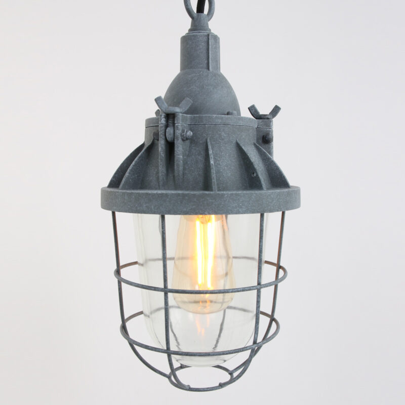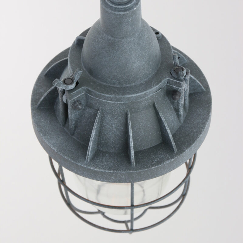 Die industrielle Schiffsleuchte Ebbe von Mexlite hat eine robuste Ausstrahlung mit einem beton-grauen Metallschirm und einem schützenden Drahtkäfig. Mit einem Durchmesser von 17 cm und einer Höhe von 35 cm passt diese Lampe perfekt in ein rustikales Interieur. Die Kettenaufhängung ist bis zu 156 cm verstellbar. Dimmbare Funktion für zusätzliche Atmosphäre und ideal für Esszimmer, Flure oder industrielle Räume.