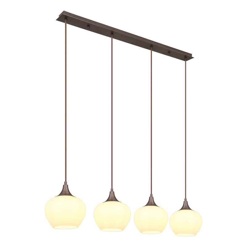 Tauchen Sie ein in die Welt des raffinierten Designs mit unserer MAXY Hängeleuchte. Das Metall in einer kaffeefarbenen Oberfläche und das Opalglas vereinen sich zu einem Kunstwerk, das Ihr Zimmer in ein angenehm helles Licht taucht. Das schwarze Textilkabel verleiht einen modernen Touch, während die Abmessungen von LxBxH: 1000x180x1200 mm einen imposanten Eindruck hinterlassen. Mit den E27-Fassungen können Sie die Lichtfarbe und Helligkeit selbst bestimmen, bis zu einer maximalen Leistung von 40 Watt. Bringen Sie Stil und Eleganz in Ihre Räume mit der MAXY Hängeleuchte und lassen Sie Ihre Möbel erstrahlen.