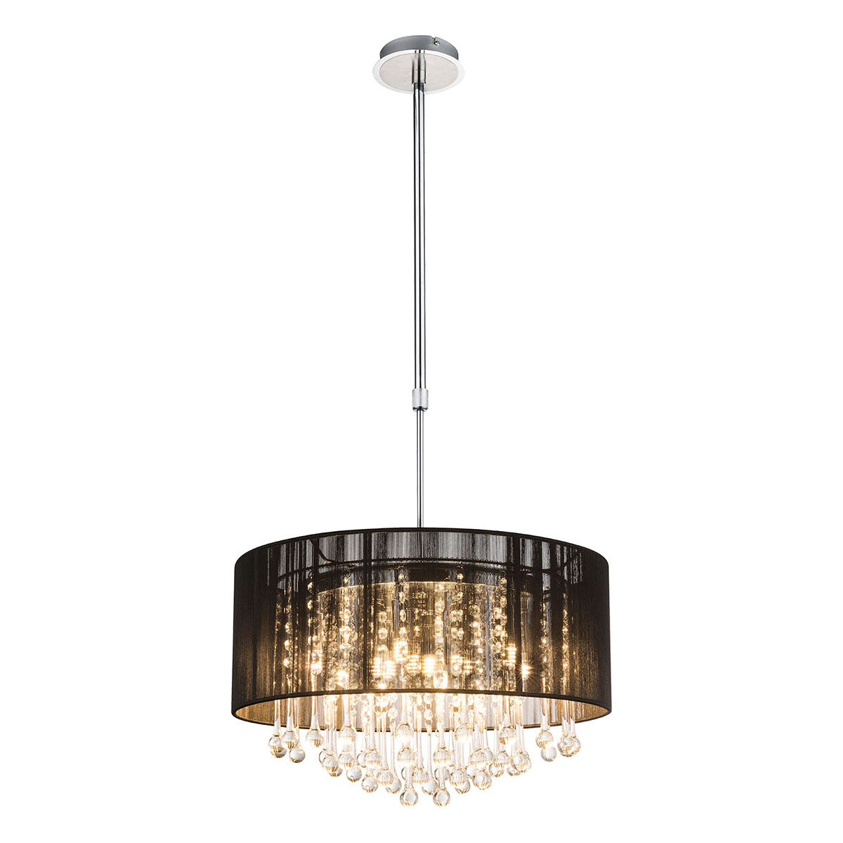<pDiese luxuriöse runde Pendelleuchte aus der Bagana-Serie, bedeckt mit schwarzer Seide und verziert mit klaren Glaskristallen, bietet ein auffälliges Design. Mit einem Durchmesser von 50 cm und einer höhenverstellbaren Funktion von 75-115 cm bietet diese Leuchte eine warme Lichtfarbe von 3000K. Die zwölf 3W LED-Lampen sind austauschbar. Kombinieren Sie mit anderen Modellen für eine vollständige Einrichtung.