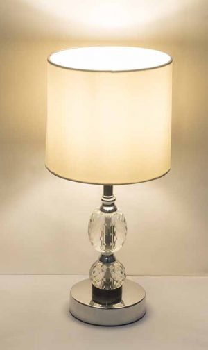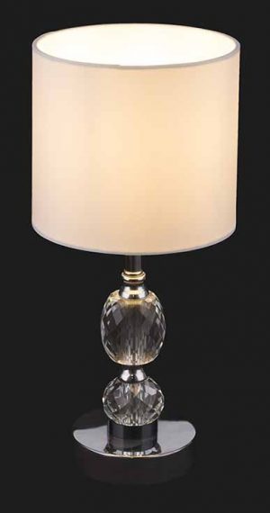 Strahlen Sie zeitlose Klasse aus mit dieser eleganten Tischlampe von 47 cm Höhe, fachmännisch entworfen mit hochwertigen Materialien. Die Lampe ist mit einem runden, weißen Textilschirm mit einem Durchmesser von 21 cm ausgestattet, der perfekt mit dem beeindruckenden Fuß aus glänzendem verchromtem Metall und reinem Kristall harmoniert. Diese Innenbeleuchtung verfügt über einen Ein/Aus-Schalter und eine vielseitige E14-Fassung, die Ihnen die Freiheit gibt, die Lichtquelle auszuwählen und somit die gewünschte Lichtintensität und -farbe festzulegen (max. 40W). Für eine bemerkenswerte Energieeffizienz und Langlebigkeit werden LED-Lampen dringend empfohlen.