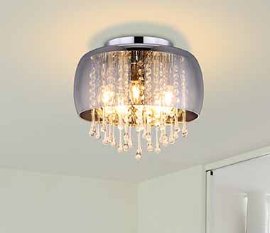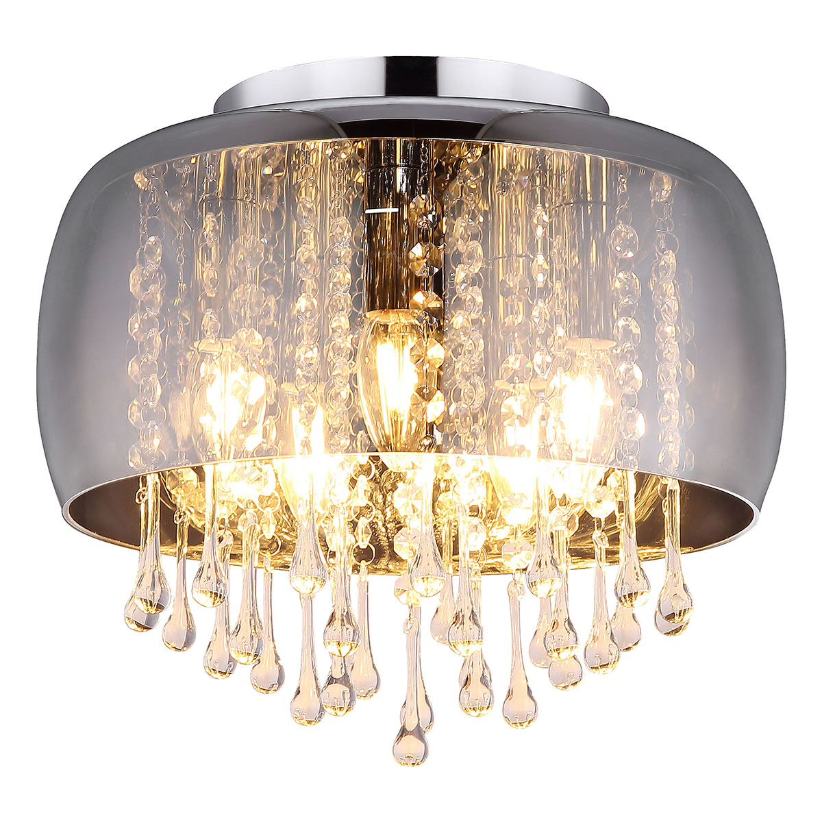 Diese exklusive Deckenleuchte aus der KALLA-Serie schafft eine einzigartige Atmosphäre in Ihrem Wohn-, Ess- oder Schlafbereich. Die runde chromfarbene Deckenleuchte mit einem Durchmesser von 35 cm hat einen rauchfarbigen Glasschirm, der die klaren Glaskristalle wunderschön umschließt. Sie können die Lichtintensität und Lichtfarbe nach Ihren Wünschen mit fünf E14-Lampen (max. 25W) anpassen. Für Energieeinsparung und lange Lebensdauer werden LED-Lampen empfohlen.