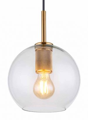 Bereichern Sie Ihr Interieur mit dieser Hängeleuchte aus der Adara-Serie, gefertigt aus messingfarbenem Metall und klarem Glas. Das kugelförmige Glas (ø 20 cm) hängt in einer Höhe von 1,2 m und kann mit einer E27-Lampe ausgestattet werden, sodass Sie die volle Kontrolle über Lichtfarbe und Helligkeit haben.