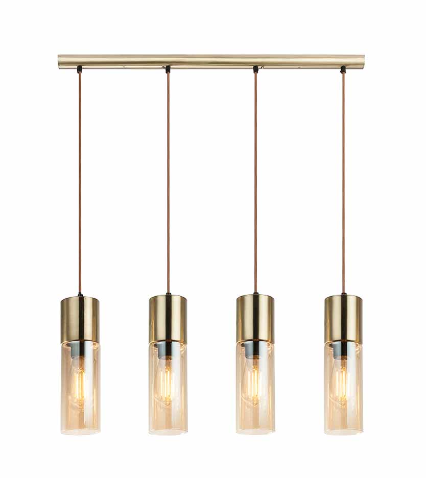 Verzaubere dein Interieur mit der Annika Hängeleuchte, gefertigt aus mattem Messing. Das Design ist einfach, aber ansprechend, mit vier zylindrischen Leuchten, die nahtlos in eine moderne Wohnumgebung passen. Die Lampenschirme aus bernsteinfarbigem Glas strahlen einen subtilen Glanz aus, wenn sie eingeschaltet werden. Diese luxuriös aussehende Hängeleuchte, die perfekt über einem Esstisch oder einer Arbeitsplatte platziert werden kann, gibt dir die Freiheit, die Lichtquelle nach deinen Wünschen auszuwählen, dank der E27-Anschlüsse. Für eine langlebige und energieeffiziente Beleuchtungslösung empfehlen wir LED-Lampen. Kombiniere sie mit anderen Artikeln aus derselben Serie für einen raffinierten Abschluss.