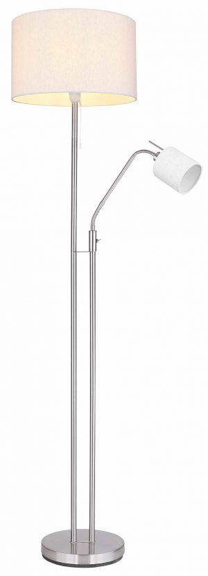 Fügen Sie Ihrer Wohnräume mit dieser Stehlampe aus der Ava-Serie ein elegantes Element hinzu. Das Design kombiniert mattes Nickelmetall mit einem sandfarbenen Textilschirm für einen raffinierten Look. Die Lampe hat eine Höhe von 175 cm und verfügt über einen großen runden Textilschirm (Durchmesser 40 cm) sowie einen kleineren verstellbaren Spot. Beide können mit einer E27-Lampe ausgestattet werden, sodass Sie die volle Kontrolle über die Lichtintensität und -farbe haben. Kombinieren Sie diese Lampe mit anderen Artikeln aus der Ava-Serie für ein harmonisches Interieur.