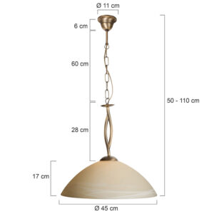 Die bronzefarbene klassische Hängeleuchte aus der Capri-Serie von Steinhauer strahlt Charme und zeitlose Eleganz aus. Die filigranen Metalldetails in Kombination mit einem Glasschirm in warmem Gelb/Creme sorgen für einen authentischen und stimmungsvollen Lichteffekt. Die Lampe hat einen Durchmesser von 45 cm und eine verstellbare Höhe zwischen 60 und 109 cm, wodurch sie für verschiedene Räume geeignet ist. Ausgestattet mit einer E27-Fassung und kompatibel mit Lichtquellen bis 40 Watt. Eine wunderbare Ergänzung für ein klassisches Esszimmer, einen einladenden Flur oder ein warmes Wohnzimmer.