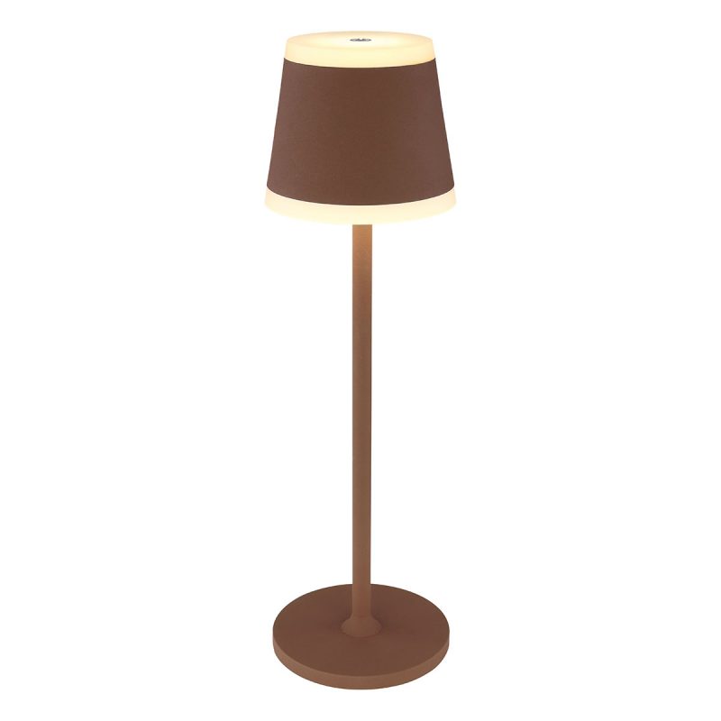 Experimentiere mit der Vielseitigkeit unserer modernen RIDLEY Tischlampe, die ein faszinierendes Design mit praktischen Vorteilen kombiniert. Mit ihrem rostfarbenen Metall und dem opalen Acrylschirm verleiht diese Lampe jeder Einrichtung einen einzigartigen und stilvollen Akzent. Passe die Beleuchtung ganz nach deiner Stimmung mit einfach zu bedienenden Dimmfunktionen an und schalte die Lichtquelle mit einem einfachen Touch ein. Bereichere auch deinen Außenbereich mit stimmungsvollem Licht, dank der IP54-Zertifizierung, die die Lampe wetterfest macht. Ausgestattet mit einem starken Akku, der in etwa 6 Stunden aufgeladen wird, genießt du fast 6 Stunden stimmungsvolle Beleuchtung.