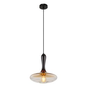 Die Hängeleuchte besteht aus Metall in mattschwarz und gebürstetem Gold sowie Glas in Rauch, Bernstein und Klar. Sie hat ein schwarzes Textilkabel und ist in der Höhe verstellbar. Die Abmessungen sind Ø 330 mm und H 1200 mm. Die Leuchte benötigt eine E27-Glühbirne mit einer maximalen Leistung von 40 W und einer Spannung von 230 V, die nicht enthalten ist. Diese Hängeleuchte ist ein echter Blickfang und lässt Ihr Zuhause in neuem Glanz erstrahlen.