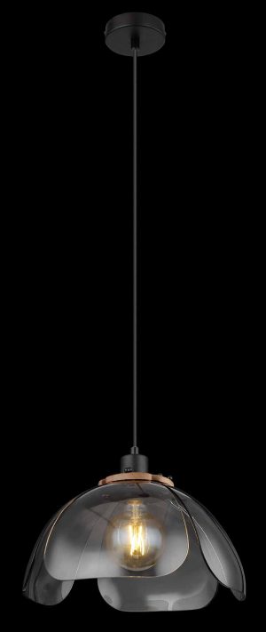 <pDiese wunderschöne Hängelampe überzeugt mit einem großartigen Design. Ein 1,2 m langes Kabel ragt aus einem runden Fuß, auf dem sich eine E27-Anschlussdose mit einem wohlgeformten rauchfarbigen Glasschirm in Form einer Blume befindet. Die E27-Fassung gibt dir die Freiheit, eine Lichtfarbe und Helligkeit von bis zu maximal 40 Watt zu wählen. Aufgrund der langen Lebensdauer und Energieeinsparung empfehlen wir LED-Lampen.