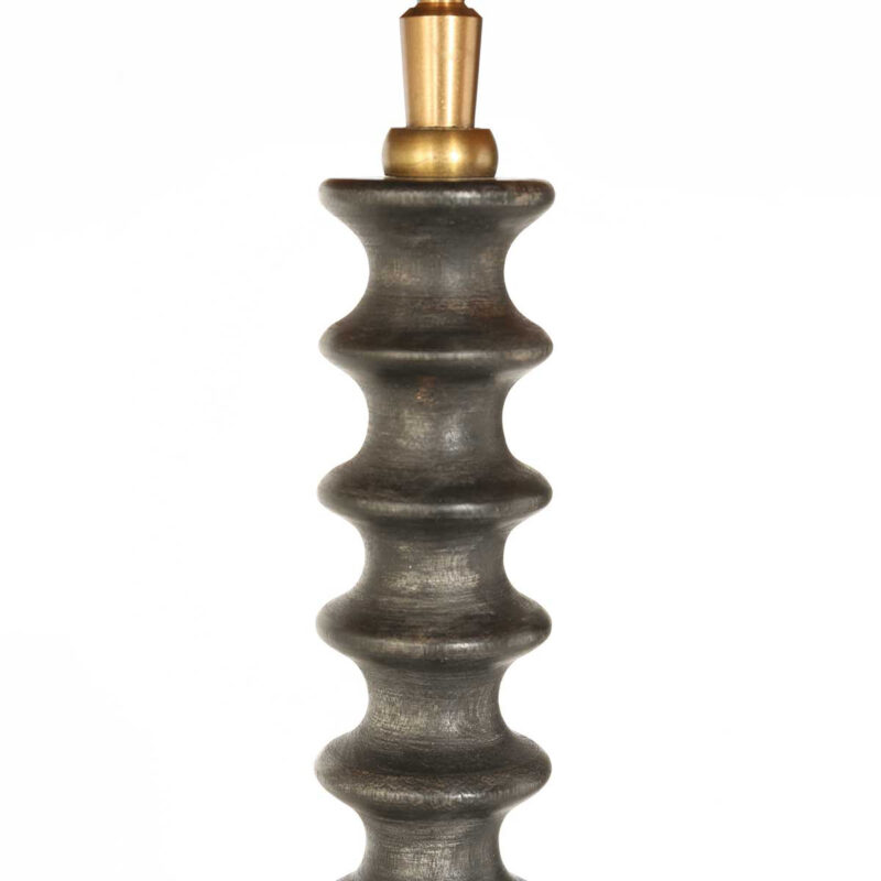 Klassische schwarze Tischlampe aus der Retro Bois-Serie von Anne Lighting, ausgestattet mit einem luxuriösen grauen Taupe-Velours-Schirm. Die tiefe Holzfarbe des Fußes verleiht ländlichen Interieurs eine robuste Eleganz. Dank des verstellbaren E27-Gewindes bleibt der Schirm immer perfekt gerade. Mit einer Höhe von 65 cm und einem Durchmesser von 40 cm ist diese Lampe eine stilvolle Wahl für stimmungsvolle Beleuchtung in Esszimmern und Wohnzimmern. Geliefert mit einem Schnurschalter und 2 Jahren Garantie.