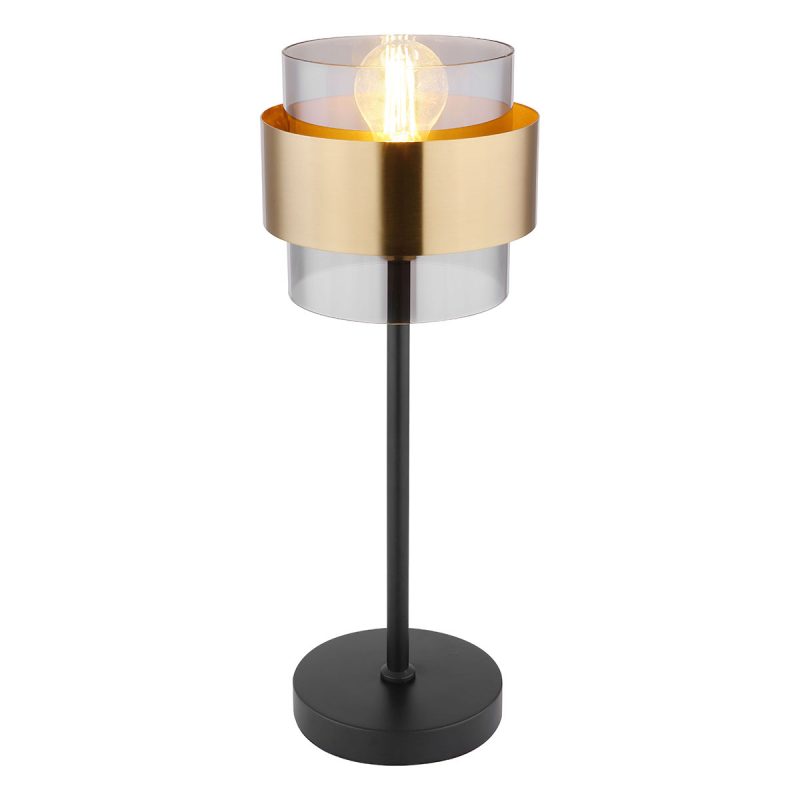 Diese Tischlampe (ø 18 cm) beeindruckt mit ihrem ästhetischen Design aus mattschwarzem Metall und rauchigem Glas. Die 47 cm hohe Tischlampe besteht aus einem runden Metallfuß, der mit einer Metallstange versehen ist. Diese hat einen zylindrischen, rauchigen Glasschirm mit einer Messingring an der Oberseite, den Sie mit einer geeigneten Lampe Ihrer Wahl ausstatten können. Dies gibt Ihnen die Möglichkeit, die Lichtfarbe und Helligkeit individuell zu bestimmen. Mit anderen Modellen derselben Serie können Sie stilvolle Akzente in Ihrem Interieur setzen und das Gesamtbild komplett machen.