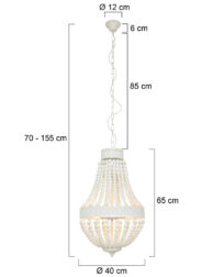 Diese elegante Hängeleuchte kombiniert den Charme eines kompakten Kronleuchters mit einem verspielten Design aus Holzperlen und metallischen Akzenten. Die Fiona Hängeleuchte verfügt über drei E14-Fassungen, geeignet für Lichtquellen bis 40W, und hat einen Durchmesser von etwa 40 cm. Während der Installation kann die Höhe zwischen 70 und 155 cm angepasst werden, sodass die Lampe immer perfekt in den Raum passt. Dieses Modell von Mexlite bietet eine stilvolle Beleuchtung und ist für eine stimmungsvolle Atmosphäre konzipiert.