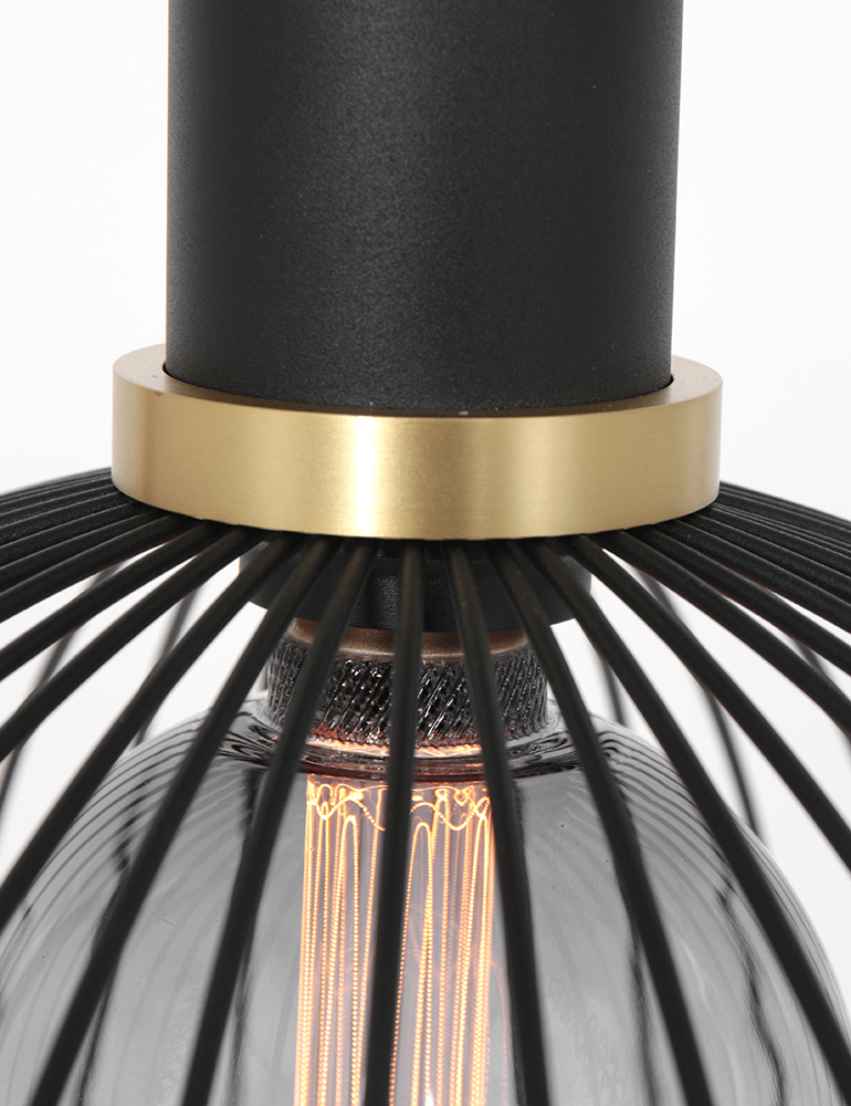 Schwarze retro Drahtlampe mit goldene Details Mexlite Aureole