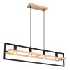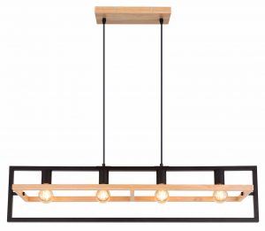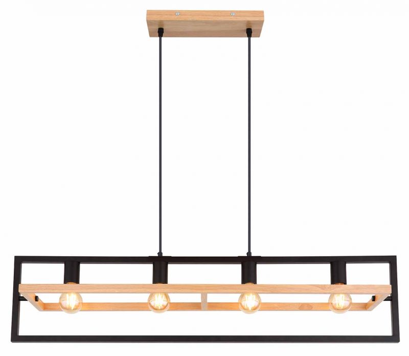 Diese moderne Deckenleuchte aus der Erica-Serie verfügt über einen mattschwarzen Metallrahmen von 98 cm mit vier E27-Fassungen, umgeben von einem verstellbaren Holzrahmen mit einer Breite von 20 cm. Die Lampe hängt an zwei Metallstäben in einer Höhe von 1,5 m von der Decke, sodass Sie die Freiheit haben, die Lichtfarbe und Helligkeit anzupassen. Ideal für verschiedene Räume.