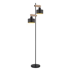 Diese moderne Stehlampe aus der RIELLY-Serie inspiriert mit großartigen Farben in Gold, Schwarz und Holzoptik. Aus einem runden Fuß ragt ein 168 cm langer Metallstab mit zwei höhenverstellbaren MDF-Balken in wunderschöner Holzoptik, die jeweils mit einer E27-Fassung ausgestattet sind. Diese werden von dekorativen Schirmen in Schwarz und Gold umhüllt und können mit einem EIN/AUS-Schalter bedient werden. Mit der E27-Anschluss können Sie die Lichtfarbe und Helligkeit bis zu einer maximalen Leistung von 40 Watt selbst bestimmen. Aufgrund der langen Lebensdauer und Energieeinsparung empfehlen wir LED-Lampen.