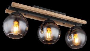 Die CONNI Deckenleuchte kombiniert modernes Design mit einem Hauch von Vintage-Charme. Die Lampe hat eine gerade, rechteckige Stange und kugelförmige Gläser und ist aus mattem Schwarzmetall und dunkelbraunem Holz gefertigt, was für einen rustikalen Touch sorgt. Perfekt für Wohnzimmer, Esszimmer oder Flure, bietet diese Lampe gemütliche und nicht blendende Beleuchtung.