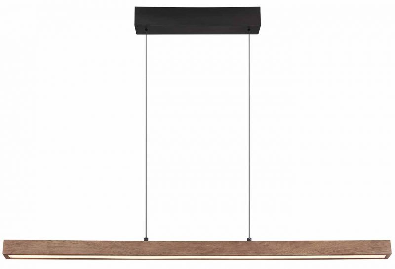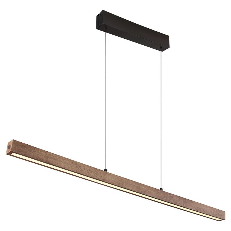 Erleben Sie die aufregende Mischung aus Stil und Funktionalität mit dieser eleganten Pendelleuchte. Das subtile Zusammenspiel von dunkelbraunem Holz, schwarzem Metall und opalem Kunststoff strahlt modernen Charme aus, während der Rollmechanismus und der Touch-Dimmer Ihnen unbegrenzte Kontrolle über die Lichtintensität geben. Diese stimmungsvolle Beleuchtungslösung strahlt nach oben und erzeugt 2040 Lumen warmweißes Licht (3000K) mit einer Leistung von 24W und merkt sich dank der praktischen Speicherfunktion Ihre bevorzugten Lichteinstellungen. Mit den schlanken Abmessungen von 1150 x 45 mm ist diese Lampe perfekt, um jedes Interieur mit stimmungsvoller Helligkeit und Eleganz zu bereichern.