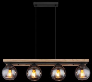 Unsere CONNI Hängeleuchte im Vintage-Stil bietet eine einzigartige Ergänzung für Ihr Zuhause. Mit einem geraden Stab und kugelförmigem Glas, gefertigt aus mattem Schwarzmetall und dunkelbraunem Holz, strahlt diese Lampe einen nostalgischen Charme aus und sorgt für ein warmes und angenehmes Licht. Perfekt, um eine gemütliche Atmosphäre in Wohnräumen, Essbereichen oder Fluren zu schaffen.