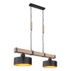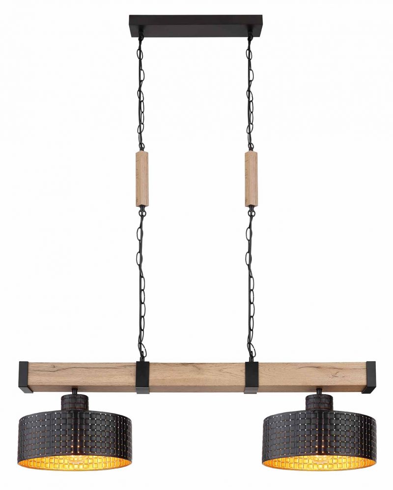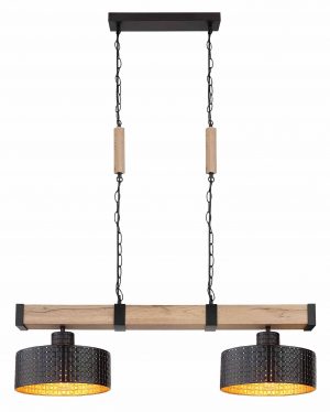 Diese wunderschöne Hängeleuchte aus der RIELLY-Serie inspiriert mit einem großartigen Design. Zwei schwarze Metallketten führen zu einem wellenförmigen Stamm in Holzoptik, auf dem zwei E27-Fassungen mit einem wohlgeformten Schirm in Schwarz und Gold ausgestattet sind. Mit den E27-Anschlüssen können Sie selbst die Lichtfarbe und Helligkeit bis zu einer maximalen Leistung von 60 Watt bestimmen.