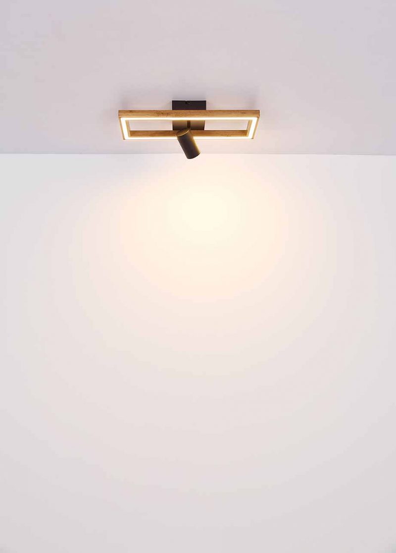 Erleben Sie die perfekte Kombination aus Funktionalität und modernem Stil mit unserer innovativen Wandleuchte. Die Lampe ist schlank gestaltet mit einem Abstand von 6 cm zur Wand, unterstützt von einem Rand in Holzoptik und integrierter LED-Beleuchtung. Sie strahlt ein warmweißes Licht von 3000 Kelvin aus, um eine gemütliche und einladende Atmosphäre zu schaffen. Diese Wandleuchte, die mit ihrem modernen Aussehen beeindruckt, ist ideal, um jeden Raum in Ihrem Zuhause zu beleuchten.