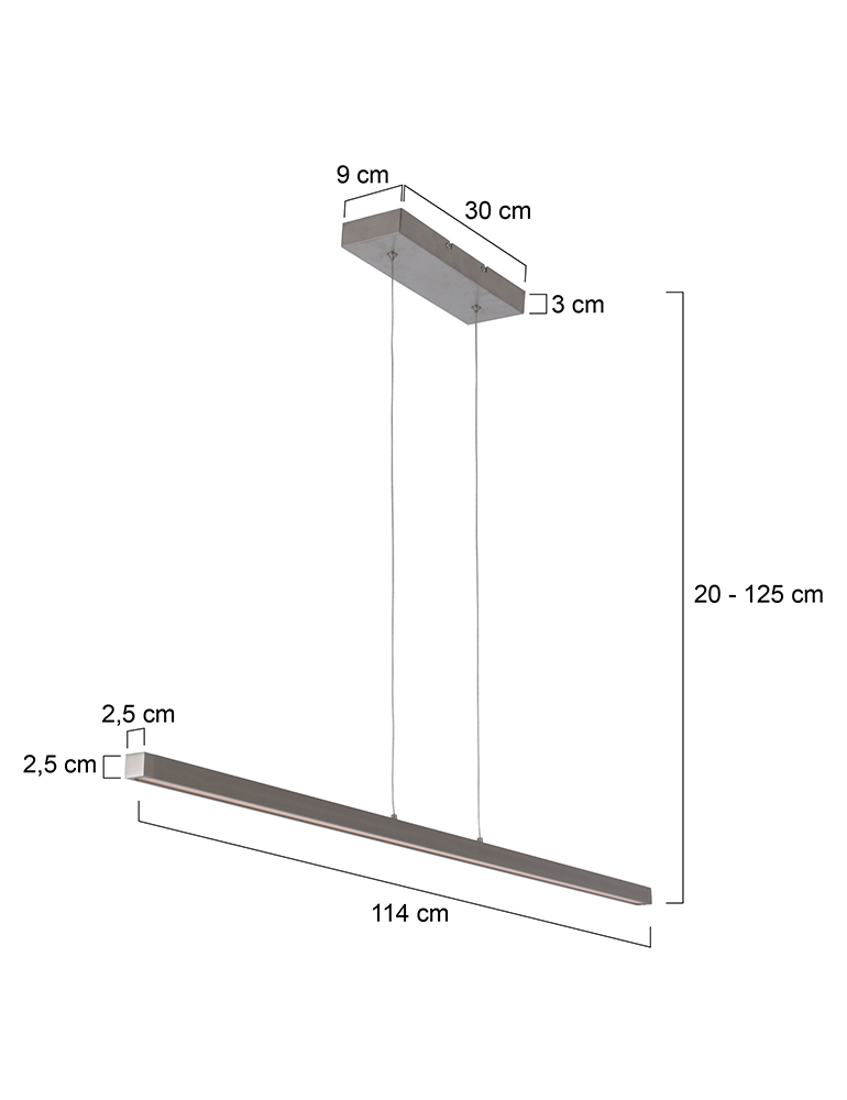 Entdecke die moderne und minimalistische Hängeleuchte aus der Danske-Serie. Dieses schlanke Gehäuse mit einer Länge von 114 cm ist mit einem leistungsstarken LED-Streifen von 20 Watt ausgestattet, mit einer Lichtausbeute von 2000 Lumen und einer warmen Lichtfarbe von 2700 Kelvin. Die Lampe ist in der Höhe von 20 bis 125 cm verstellbar, sodass du sie perfekt auf dein Interieur abstimmen kannst. Die Bedienung erfolgt einfach über den Dimmer zwischen beiden Aufhängebändern, mit dem du die Lichtintensität mühelos anpassen kannst.