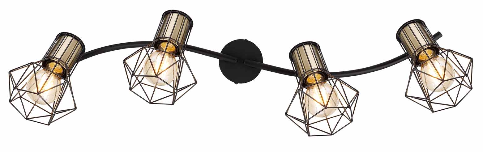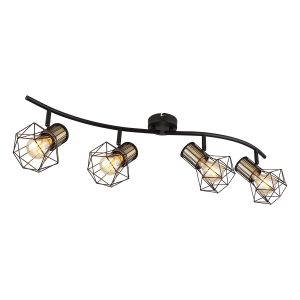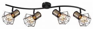 Verzaubere dein Interieur mit dem Deckenstrahler aus der bezaubernden Priska-Serie. Vier verstellbare, diamantförmige Schirme aus schwarzem Metallgitter hängen an zwei alten Messingarmen, die mit Sicherheit die Aufmerksamkeit jedes Besuchers auf sich ziehen werden. Jeder Spot ist mit einem E27-Sockel ausgestattet, sodass du die Lichtquelle nach Wahl bis zu 40W einstellen kannst, um die Farbe und Intensität des Lichtes zu regulieren. Denk daran, LED-Lampen zu verwenden, wegen der Vorteile für Energieeinsparung und Nachhaltigkeit. Kombiniere sie mit anderen Strahlern aus derselben Serie, um eine harmonische Beleuchtung in deinem Wohnraum zu gewährleisten.