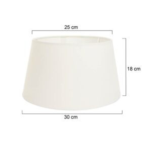 Dieser cremefarbene Stofflampenschirm von Mexlite kombiniert subtile Eleganz mit einem zeitlosen Design. Das konische Modell, mit einem unteren Durchmesser von 30 cm und einem oberen Durchmesser von 25 cm, sorgt für eine ausgewogene Lichtverteilung in deinem Interieur. Der Schirm ist mit einem E27-Fassung ausgestattet und eignet sich für verschiedene Lampenfüße. Dank des hochwertigen Stoffes und des neutralen Farbtons ist dieser Lampenschirm perfekt für sowohl klassische als auch moderne Wohnräume. Dieser Lampenschirm der Marke Mexlite wird mit 2 Jahren Garantie geliefert.
