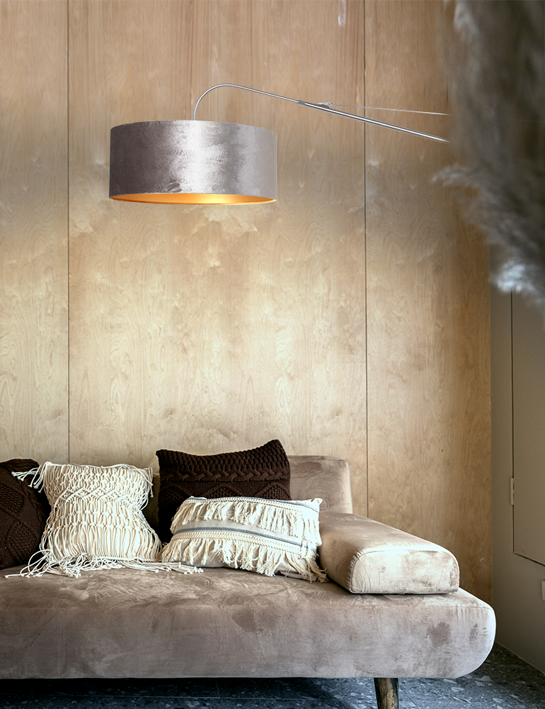 Hast du eine Einrichtung mit vielen modernen Elementen in Schwarz und Weiß? Dann passt dieses “Classy” von Steinhauer dort perfekt hinein. Der Rahmen dieser Wandlampe besteht aus schickem Stahl, der schön mit dem silberfarbenen, samtigen Lampenschirm kontrastiert. Von der Wand trägt ein gebogener Arm den Schirm. Ein robuster Stahlkabel hält den langen Arm in Position. Wähle elegante Klasse mit Classy.