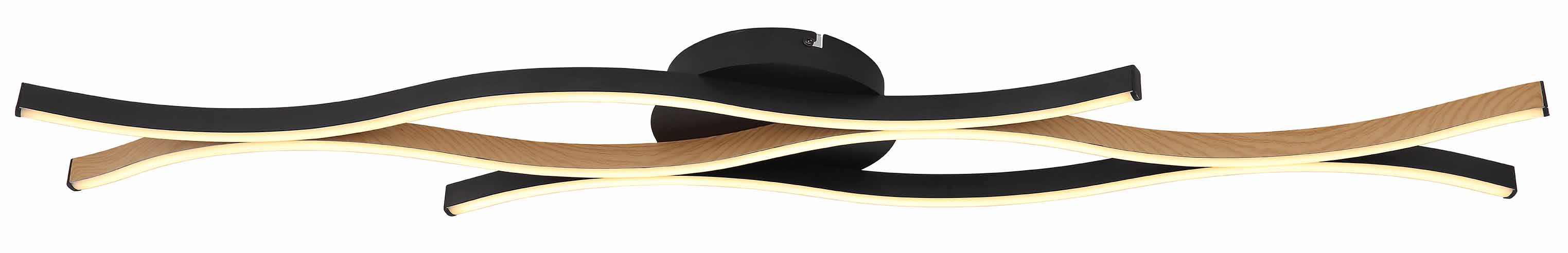 Genießen Sie stimmungsvolle Beleuchtung mit der GERONIMO Deckenleuchte. Diese raffinierte Lichtquelle wurde mit einem eleganten Gehäuse aus mattem Schwarzmetall entworfen, das mit einer opalen Kunststoffabdeckung und einem dunklen holzähnlichen Aluminiumrahmen abschließt. Mit seinen großzügigen Abmessungen von 1080x180x60mm bietet die eingebaute 35W LED-Lampe eine luxuriöse Helligkeit von 3610lm und schafft ein angenehm warmweißes Licht von 3000K. Ideal für Wohn- und Geschäftsräume bietet diese Lampe angenehme, blendfreie Beleuchtung.