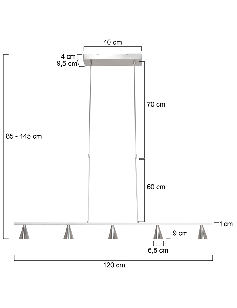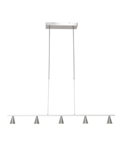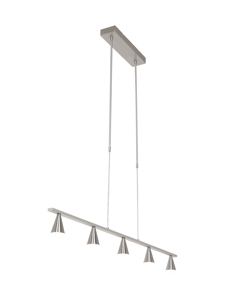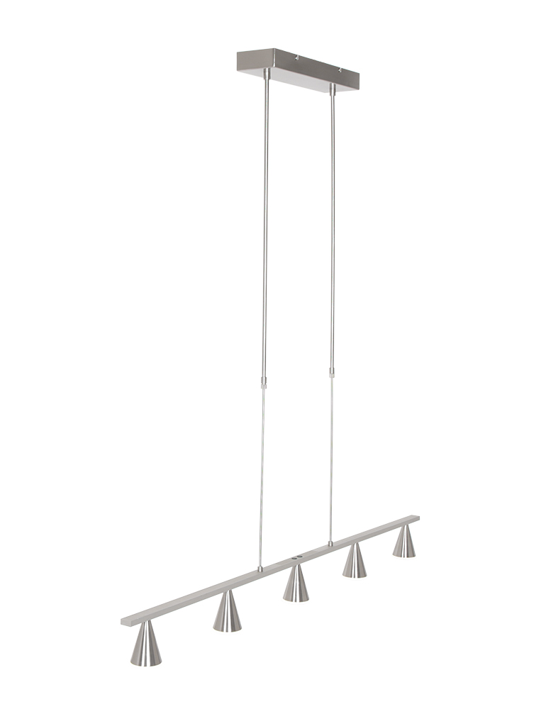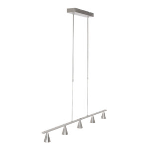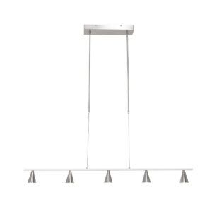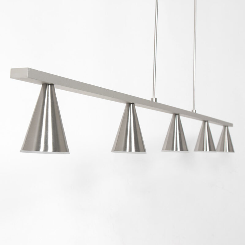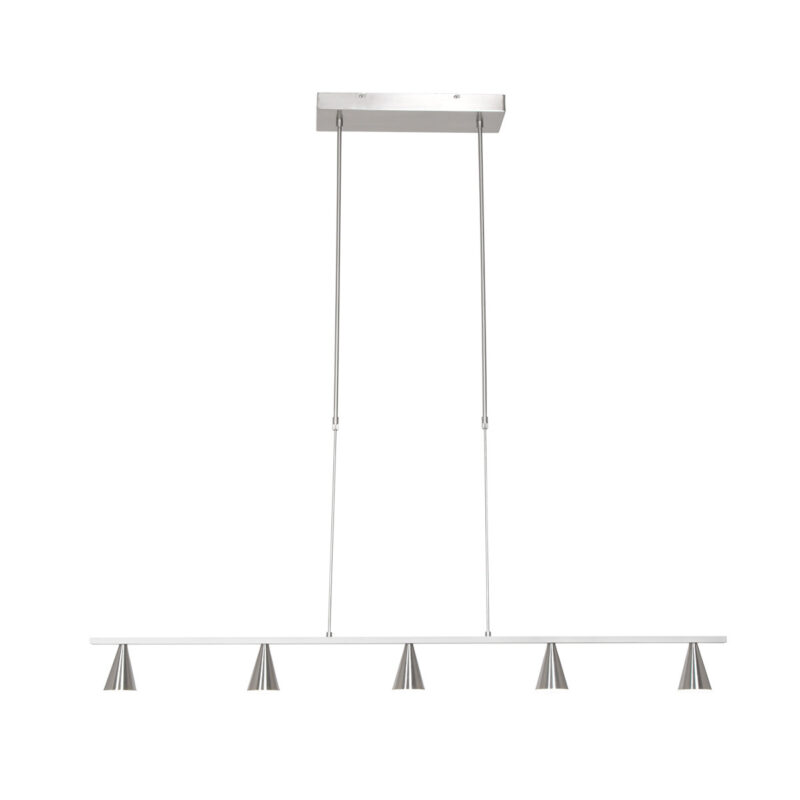 Die Vortex Hängeleuchte kombiniert Funktionalität mit modernem Design. Die fünf trichterförmigen Schirme enthalten feste LED-Module von je 5 Watt mit einer Gesamtlichtleistung von 1100 Lumen. Die Lichtfarbe ist zwischen 2700 und 4000 Kelvin einstellbar, sodass du ganz einfach die richtige Stimmung erzeugen kannst. Dank des Touchdimmers passt du die Lichtstärke direkt am Armatur an. Bei der Montage ist die Lampe in der Höhe von 85 bis 145 cm verstellbar. Mit einer Länge von 120 cm ist diese Lampe eine stilvolle Ergänzung für Esstische oder Kochinseln.