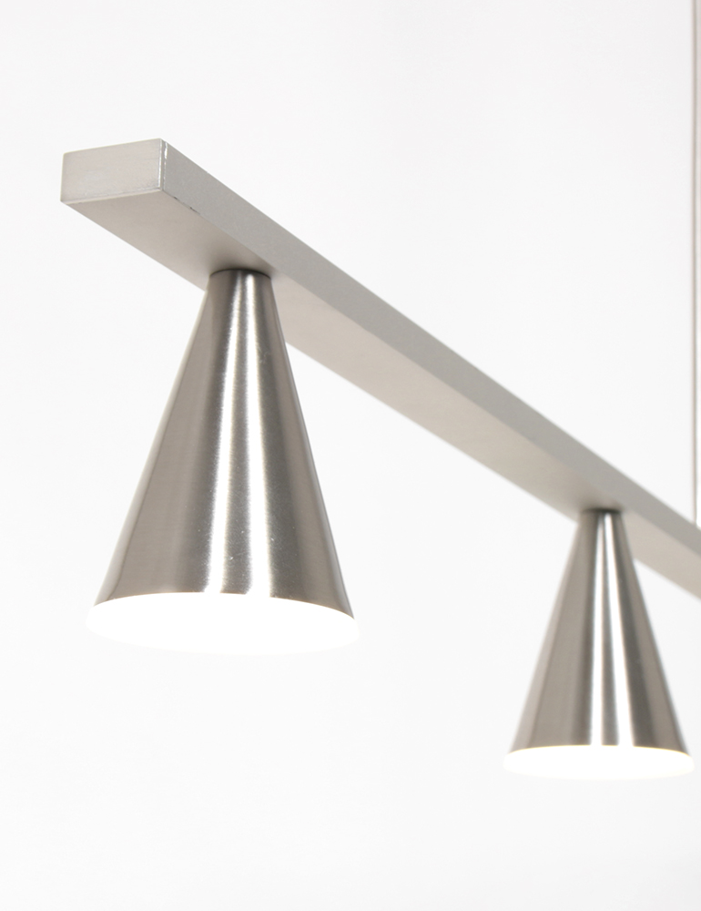 Sitzt man gerade am Tisch, ist das Licht zu hell. Wieder aufstehen, zum Dimmer gehen. Die stahlfarbene “Vortex” von Steinhauer kann direkt am Armatur gedimmt und in der Farbe verändert werden. Diese Fünflichtleuchte mit trichterförmigen Schirmen ist nicht nur praktisch, sondern auch ein echter Hingucker. Dein schön gedeckter Tisch war noch nie so angenehm beleuchtet!