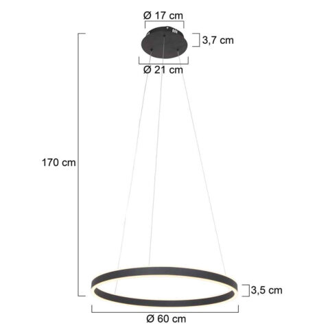 Die Leuchte hat einen Durchmesser von 60 cm und strahlt sowohl direktes als auch indirektes Licht aus, was für eine ausgewogene Beleuchtung sorgt. Die integrierte LED-Beleuchtung bietet einen warmen Lichtton von 2700K und eine Lichtausbeute von 4200 Lumen. Dank der dimmbaren Funktion und der verstellbaren Aufhängung ist die Ringlux eine praktische und dekorative Ergänzung für jedes moderne Interieur.
