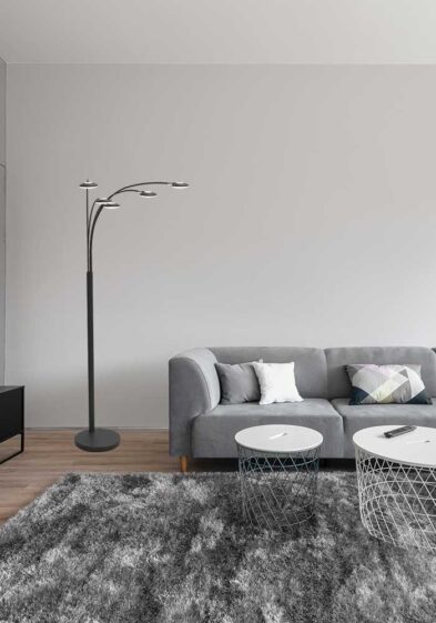 Die moderne LED Stehlampe mit fünf Lichtpunkten Mexlite Synna in Schwarz wird nicht nur deine Räume erhellen, sondern dank der fünf Lichtquellen auch als zentrales Element deiner Inneneinrichtung auffallen. Du kannst sie neben dem Lesesessel in deinem klassisch eingerichteten Wohnzimmer platzieren, aber ebenso gut in einem Büro mit zeitgemäßem Stil.