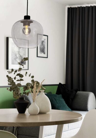 Die Lotus Pendelleuchte ist mit rauchigem Glas ausgestattet, was für einen mysteriösen Lichteffekt sorgt, ohne zu grell zu sein. Die verstellbare Höhe variiert von 25 bis 150 cm und der Schirm hat einen Durchmesser von 25 cm. Die Lampe verfügt über eine E27-Fassung, geeignet für Lichtquellen bis zu 40 Watt (nicht enthalten).